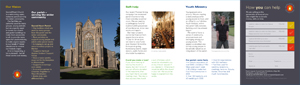 A large Catholic parish in London was launching a major fundraising campaign to improve its splendid Grade II Star church building and expand its work with young people. Viney Associates designed a logo and leaflet to help the parish communicate its ambitious vision to the local community and major donors. | ||